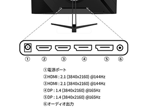 27インチのFAST IPSパネルを搭載し、165Hzの高速リフレッシュレートと1ms(MPRT)の高速応答速度に対応した4K(3840x2160)解像度のゲーミングモニターです。