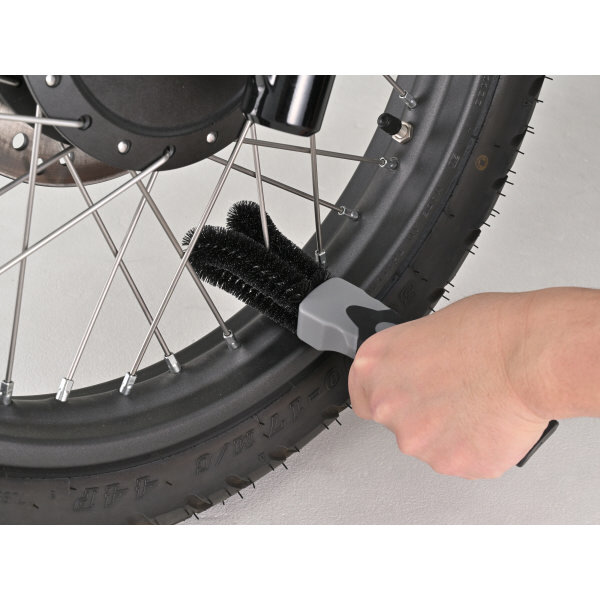 入り組んだスポーク1本1本の汚れを効率的に除去。先端が丸みを帯びた形状で、ホイールを傷つけにくい設計です。