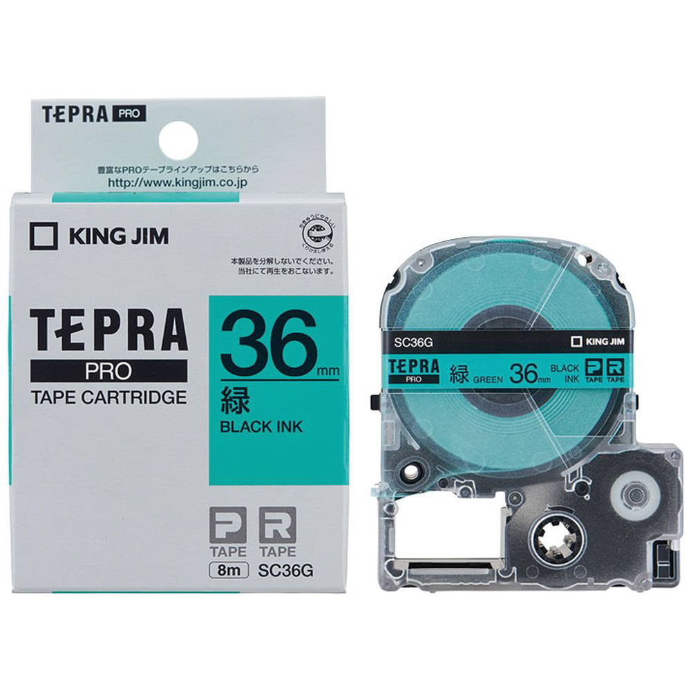 カラーラベルテープ 「テプラPRO」(緑テープ/黒文字/36mm幅) SC36G