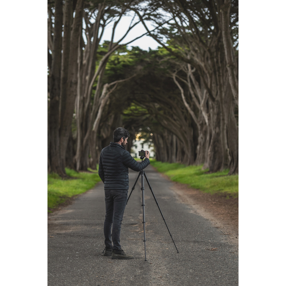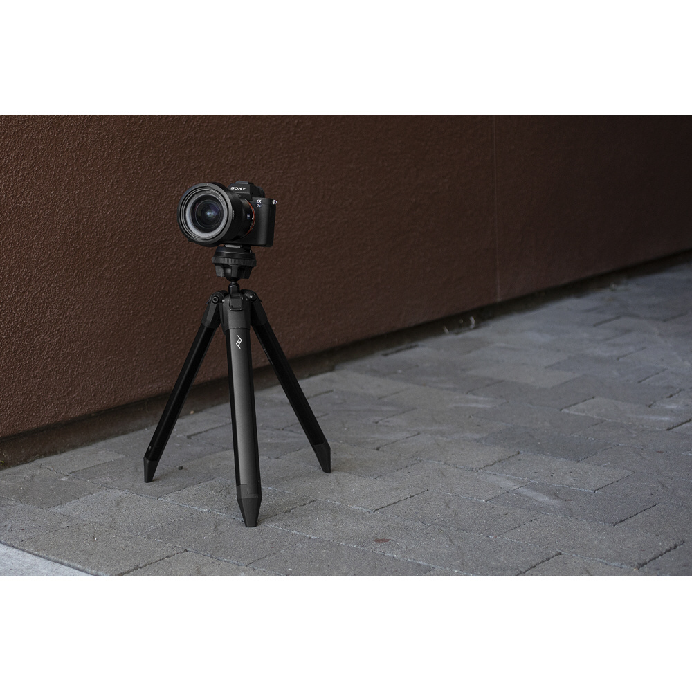 ピークデザインの「トラベルトライポッド」は、三脚本体は徹底的に無駄を削ぎ落とし、ペットボトルほどの太さまでコンパクト化されています。それにも関わらず、撮影に欠かせない高さや安定感、機能性を妥協することなく設計され、移動やロケが多い撮影シーンで圧倒的なパフォーマンスを発揮します。