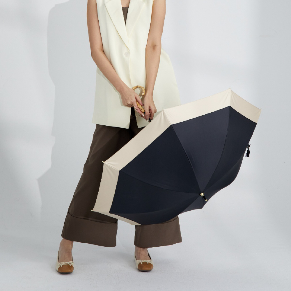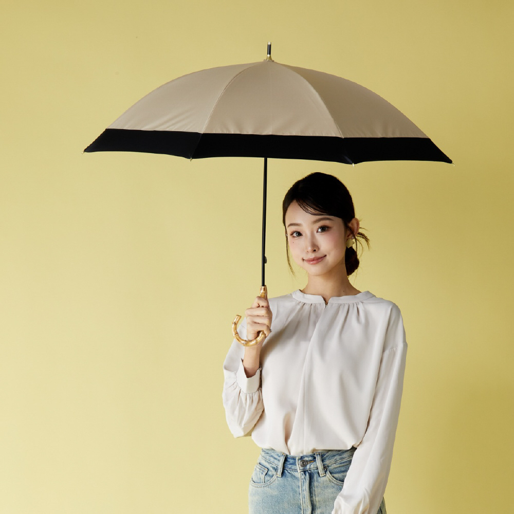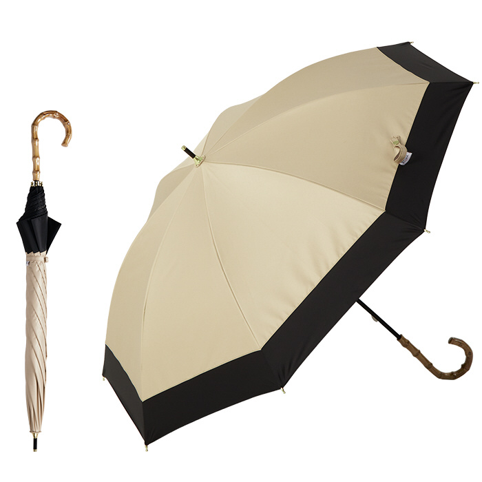 日傘 長傘 ショート丈 8本骨 バイカラー ithm ベージュ×ブラック 95019-021-BGE-BK [晴雨兼用傘 /50cm]