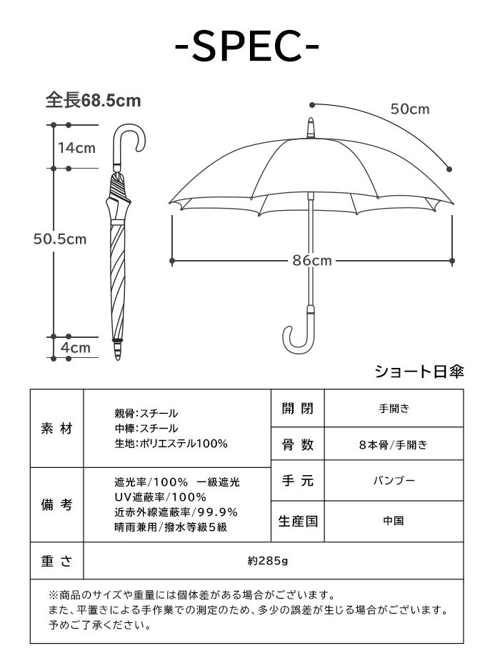 バンブーハンドルを使用したこだわりのショート丈傘。おしゃれで機能的、毎日持ち歩きたい一本。
