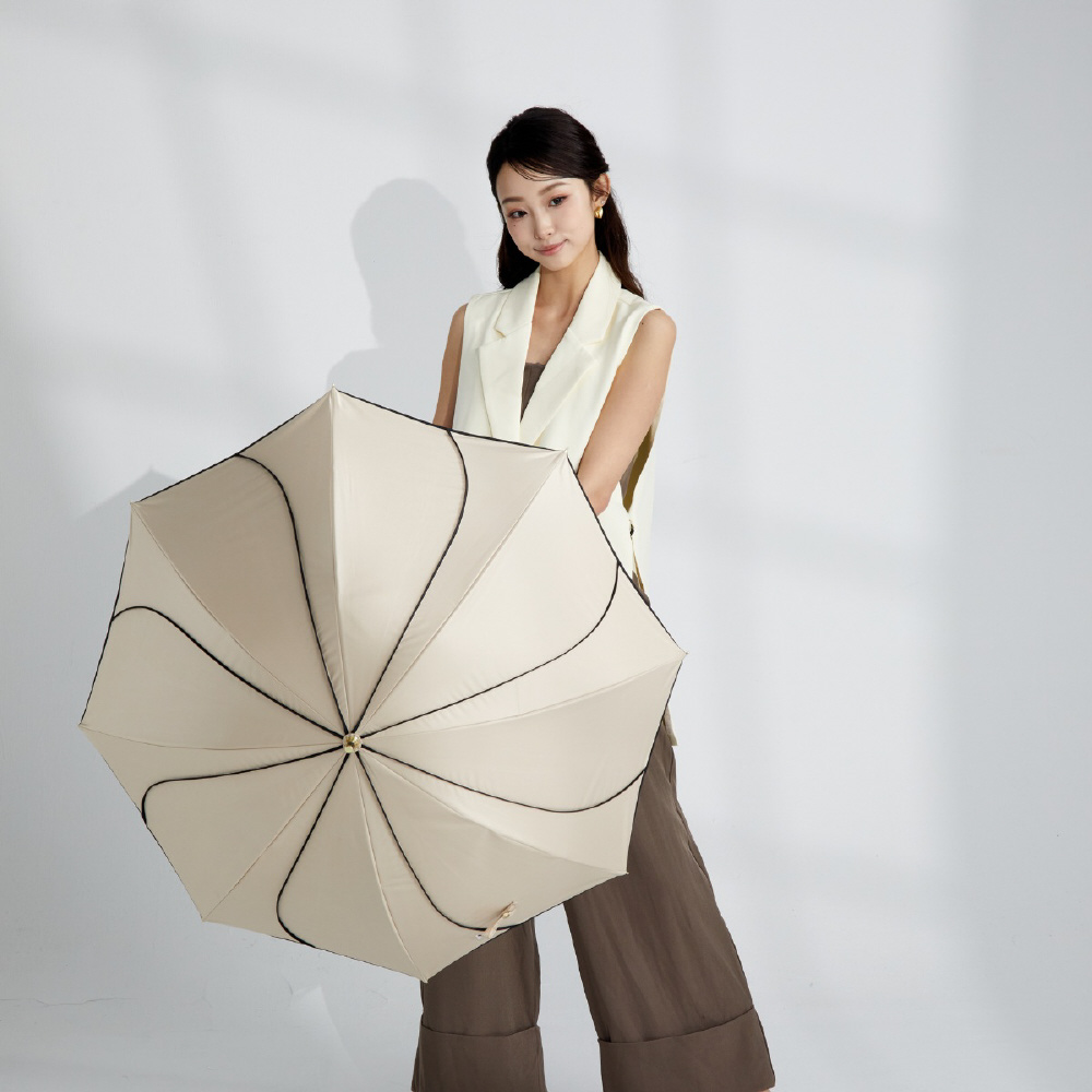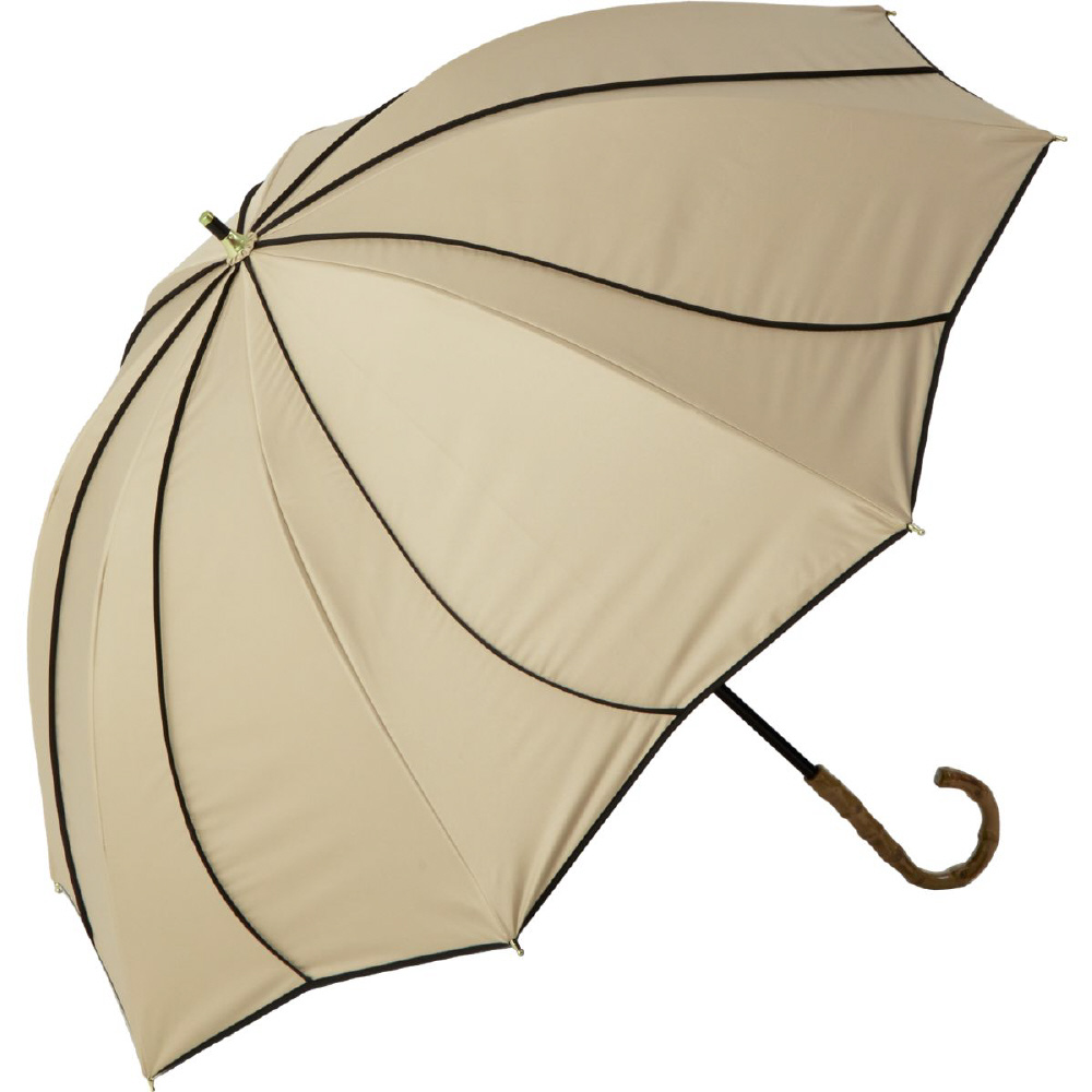 日傘 長傘 ショート丈 8本骨 花びらデザイン icolon ameri ベージュ×ブラック M55HB-081API-beige-black [晴雨兼用傘 /55cm]