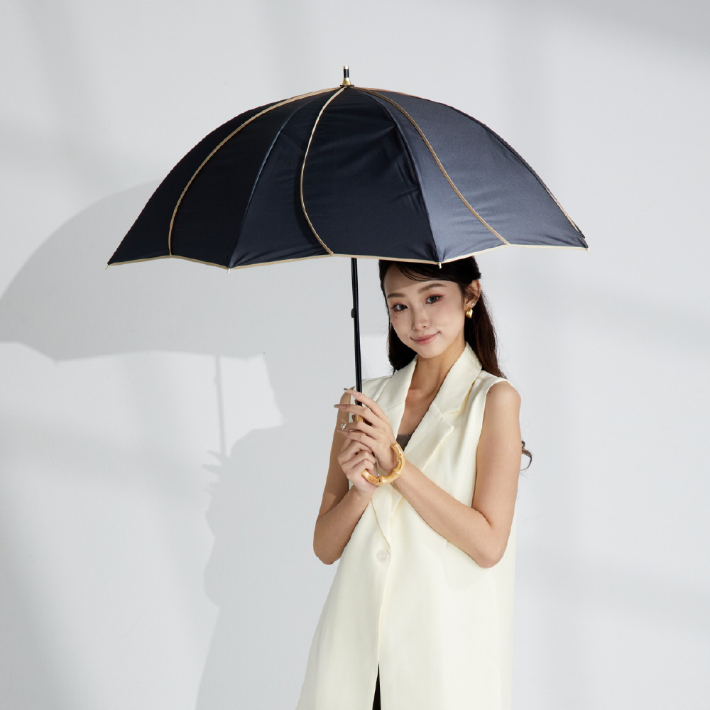 おしゃれな花びらデザインが目を引く親骨55cmの完全遮光傘。体をすっぽりと覆うことのできる十分なサイズ感。