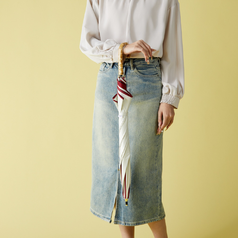 日傘 長傘 ショート丈 8本骨 花びらデザイン icolon ameri オフ×レッド M55HB-081API-off-red [晴雨兼用傘 /55cm]
