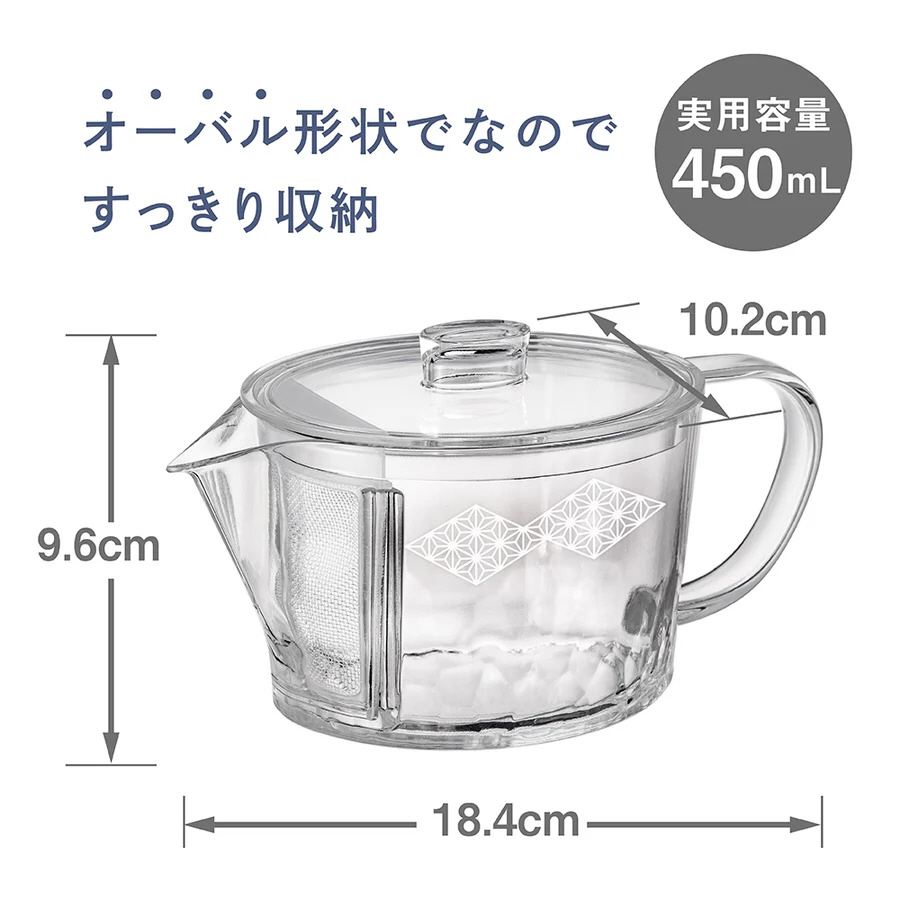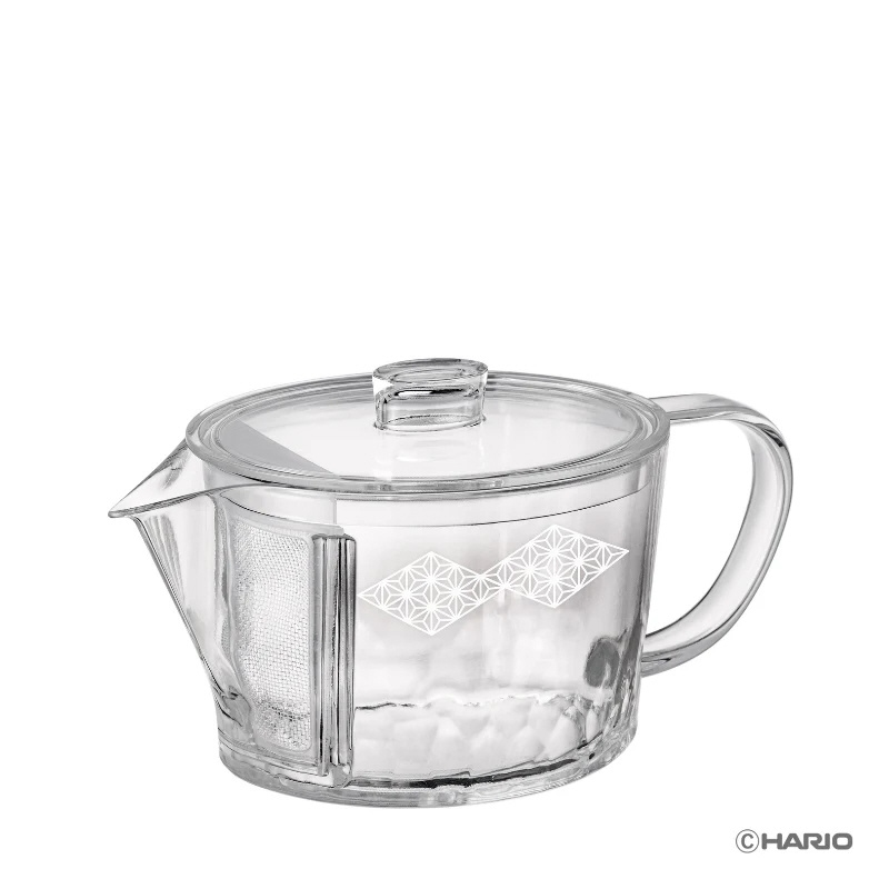 ガラスのような透明感、軽くて割れにくいトライタン製急須。日本の伝統模様である「麻の葉」を施しました