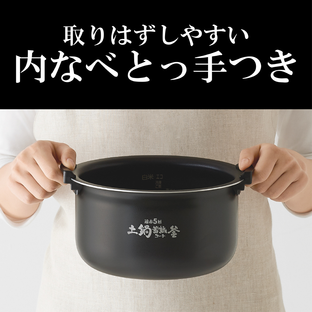 炊飯も調理もおまかせ。遠赤5層土鍋蓄熱コート釜で、炊きたてのおいしさも妥協せずにマルチに活躍。手間いらずの炊飯&時短メニューも搭載。