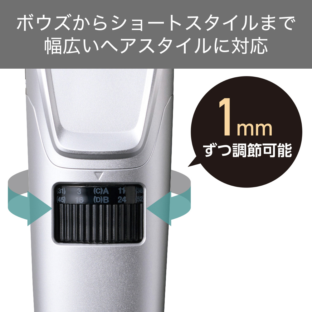 手元のダイヤルを回して、刈り高さを1mmずつ調節できるから、セルフカット初心者の方でも安心です。