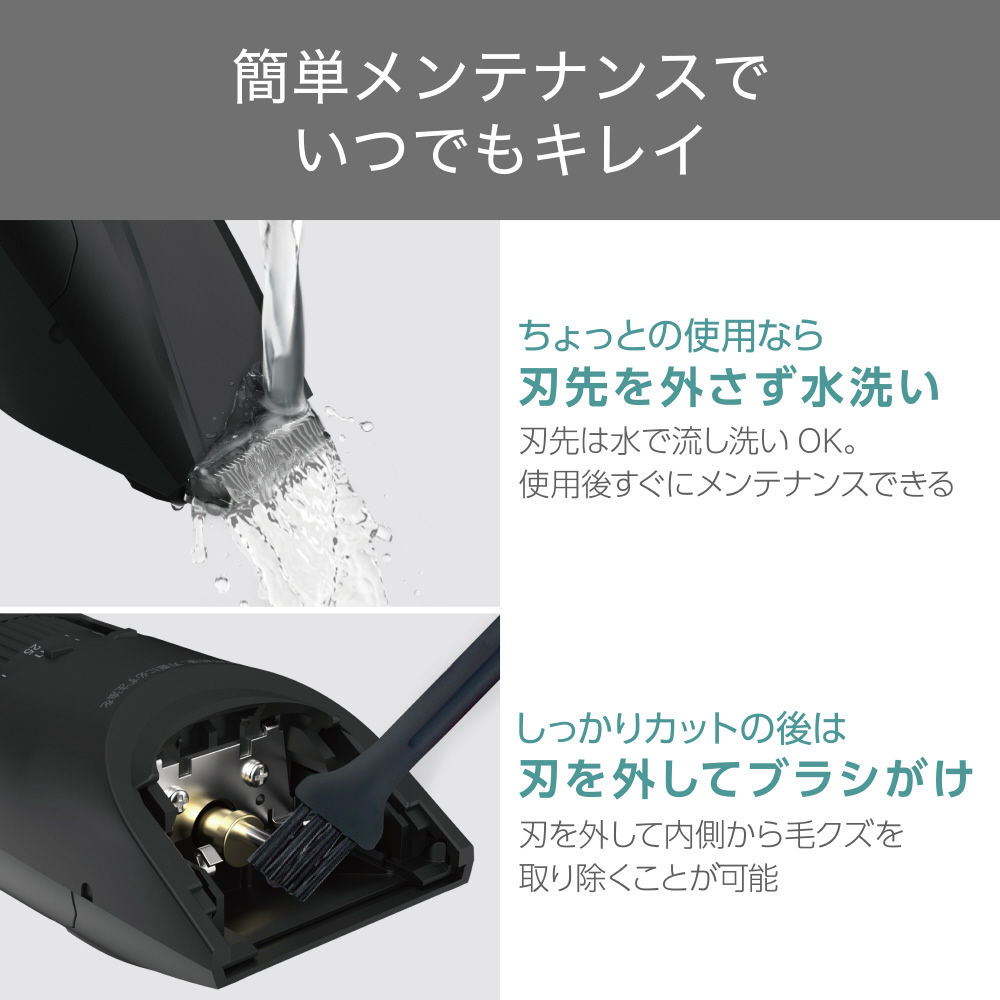 濡れた髪のままでも使えるので、入浴のついでにヘアカットを済ませたいときにもぴったりです。
