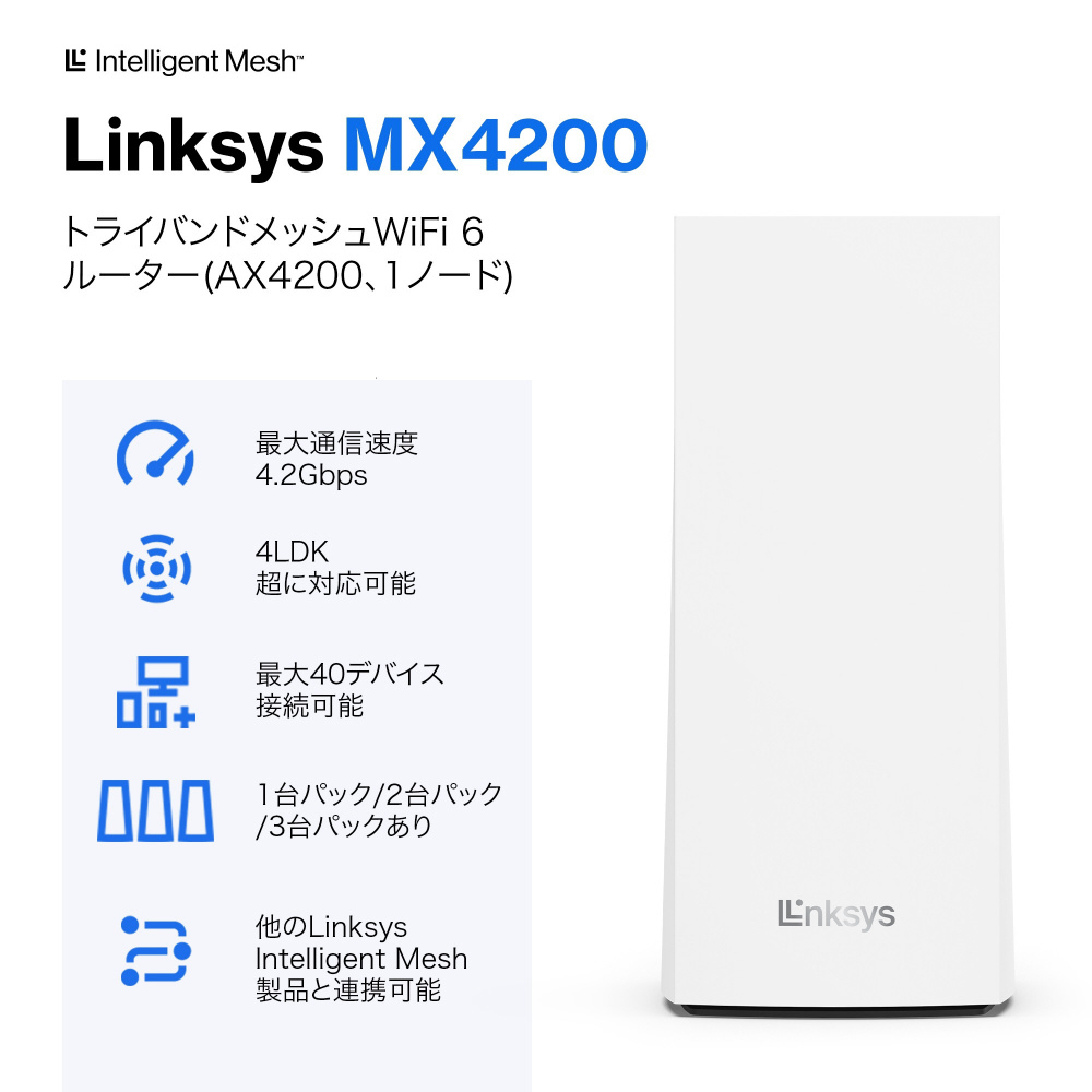 Wi-Fiルーター 574+1201+2402Mbps VELOP MX4200 AX4200 1PK MX4200-JP [Wi-Fi 6(ax) ]