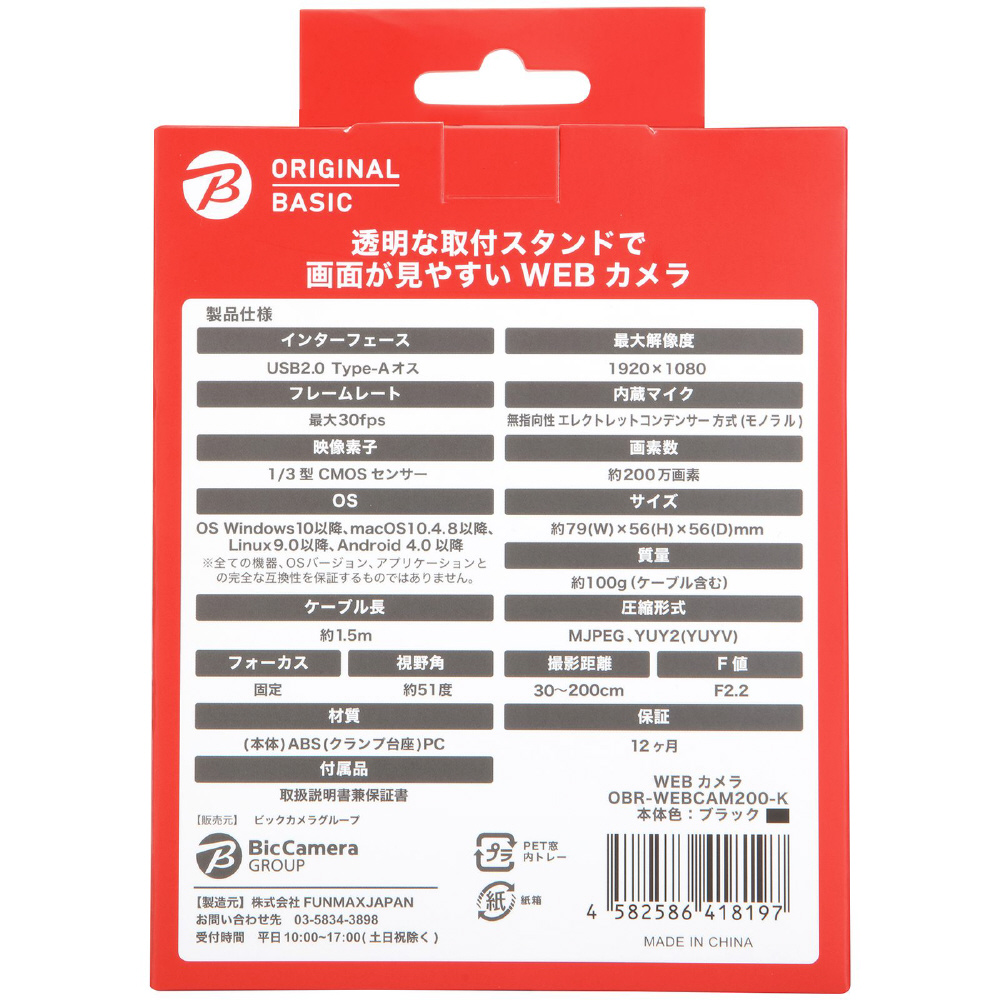 ウェブカメラ USB-A接続 ブラック OBR-WEBCAM200-K [有線]