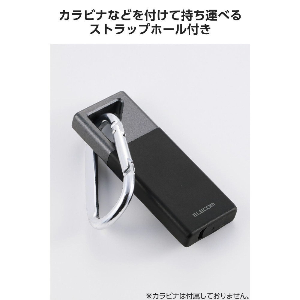 ■ストラップホールにカラビナなどを付けて持ち運べる