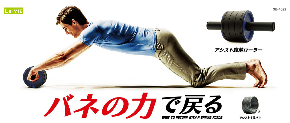 バネの力で楽々戻る!アシスト腹筋ローラー!