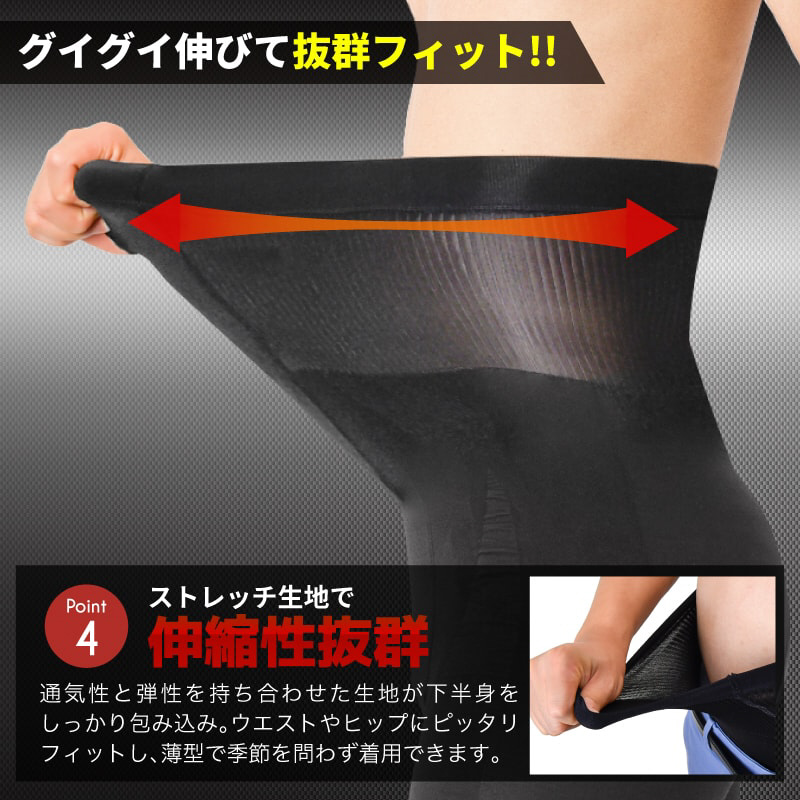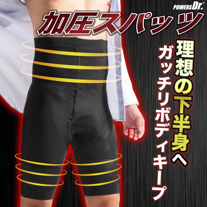 メンズ 加圧スパッツ 腹部〜太腿周り ブラック POWERSDr.007 [メンズ /Lサイズ]