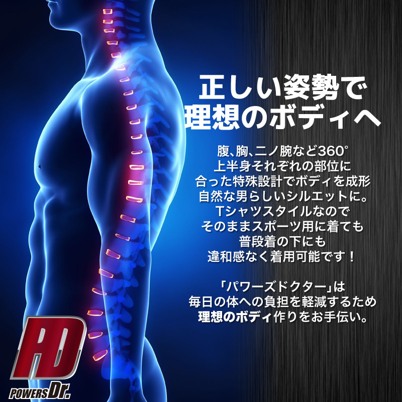 メンズ キープレッシャー加圧Tシャツ 半袖タイプ ブラック POWERSDr.004 [メンズ /Lサイズ]