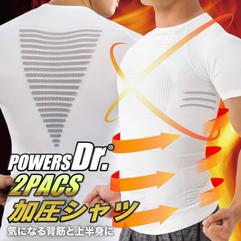 メンズ 2PAC加圧Tシャツ スポーツタイプ ホワイト POWERSDr.006 [メンズ /Lサイズ]