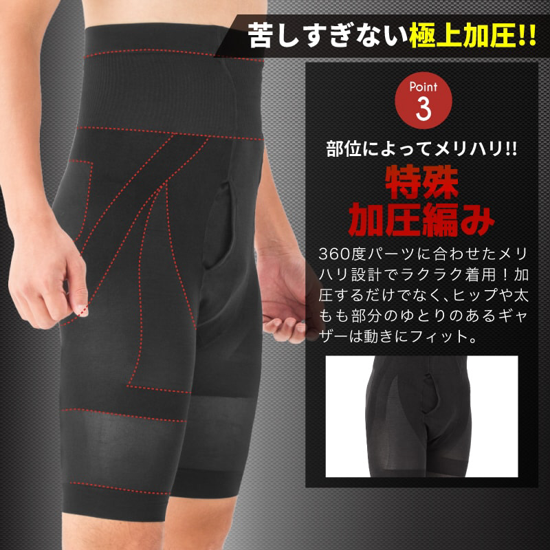 メンズ 加圧スパッツ 腹部〜太腿周り ブラック POWERSDr.007 [メンズ /Mサイズ]