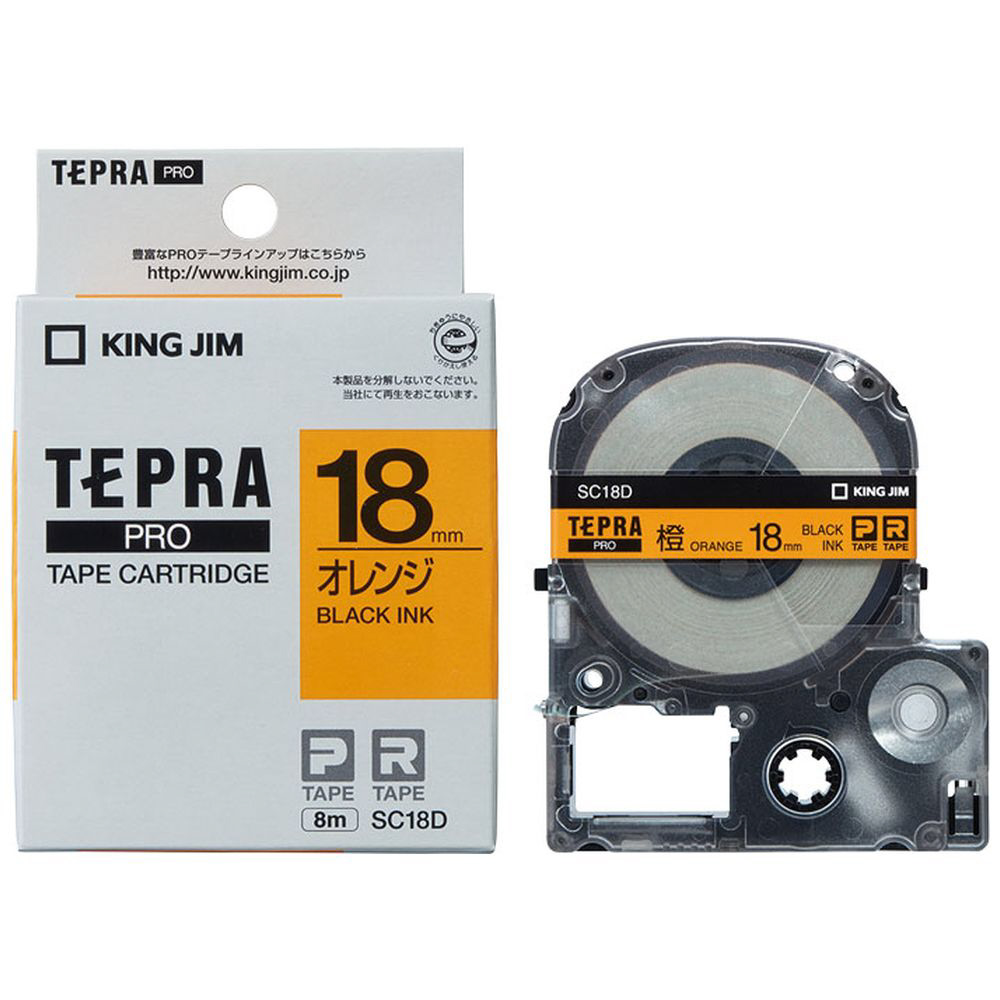 カラーラベルテープ 「テプラPRO」(オレンジテープ/黒文字/18mm幅) SC18D 【864】