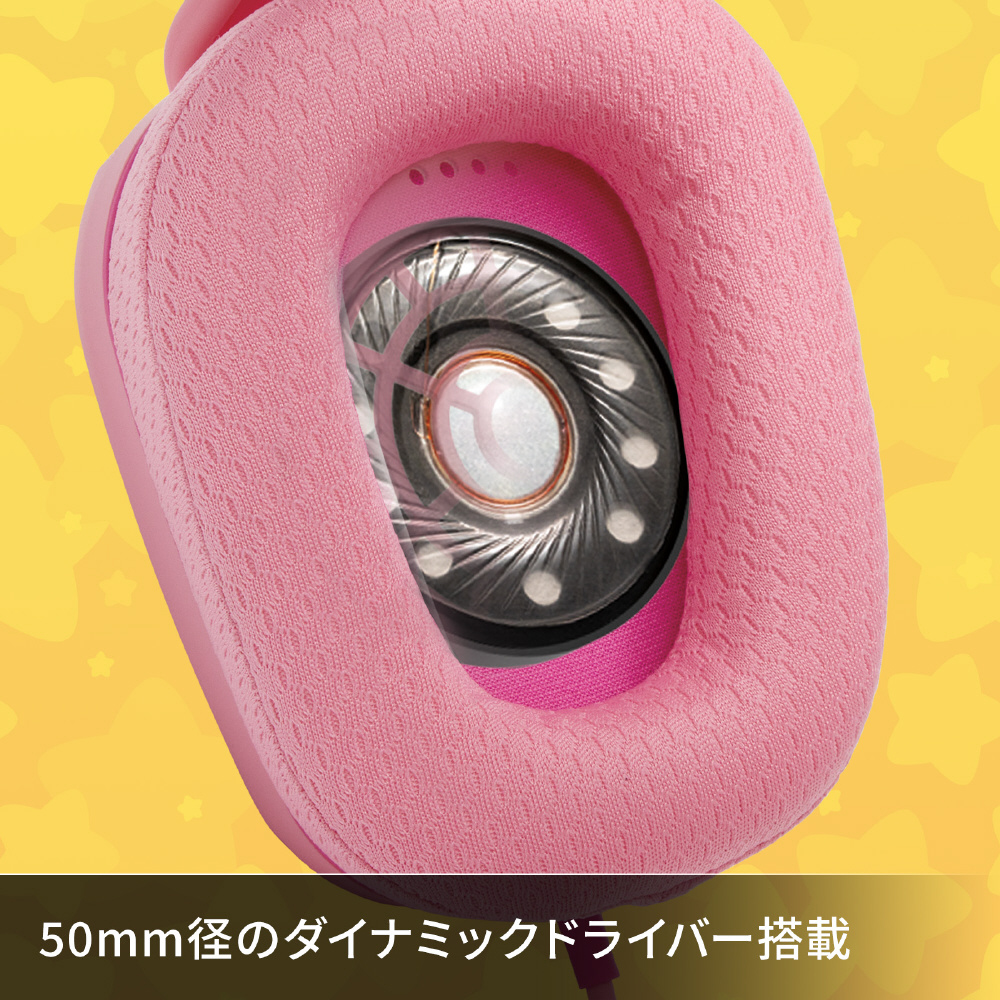 くいしんぼうなカービィをイメージして「ほおばり」と「すいこみ」の表情でデザインされた公式Nintendo Switch用有線ヘッドセット。ヘッドバンドは『星のカービィ』のコピー能力とプププランドのみんなが大集合した可愛らしい仕上がり。お気に入りのキャラクターカラーで彩り自分らしいゲームスタイルを楽しめます。軽量で通気性のあるイヤーパッドと、長さ調節可能なヘッドバンドが最適なフィット感で、長時間のプレイも快適に。