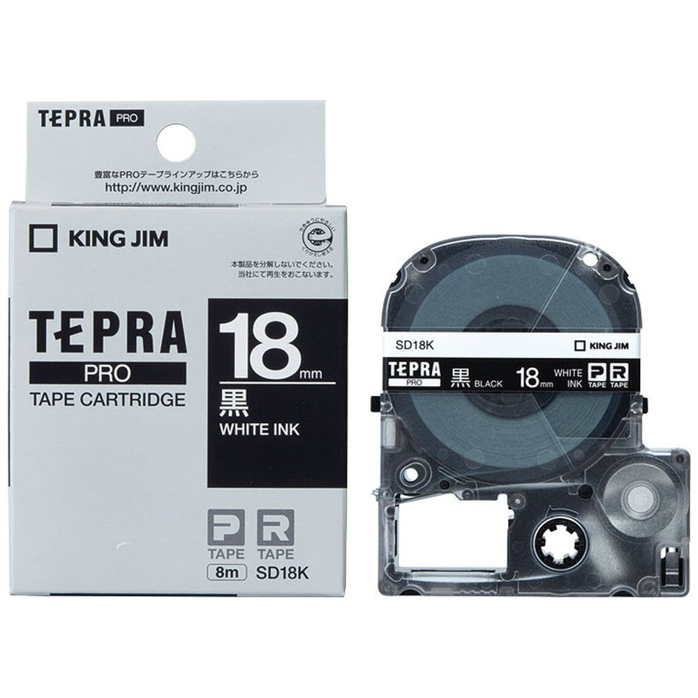 カラーラベルテープ 「テプラPRO」(黒テープ/白文字/18mm幅) SD18K