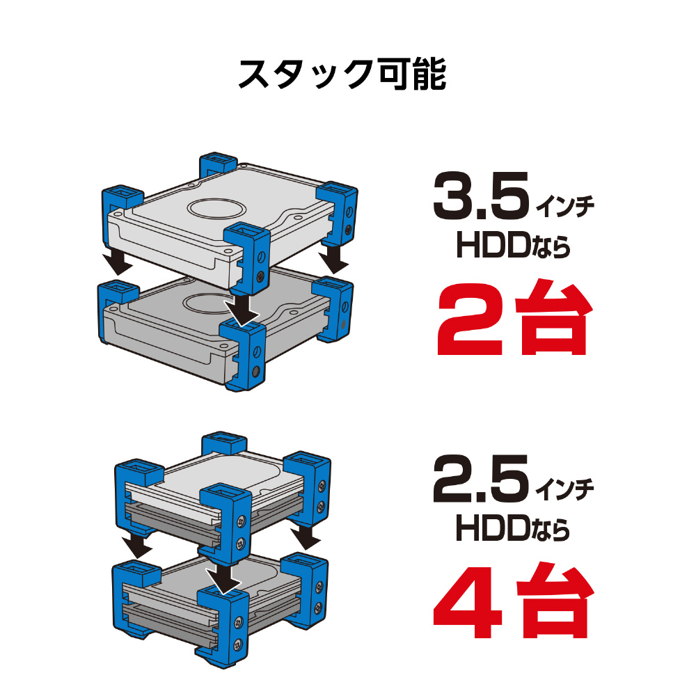 8個入りで3.5インチHDDなら2台、2.5インチHDDなら4台まで装着可能