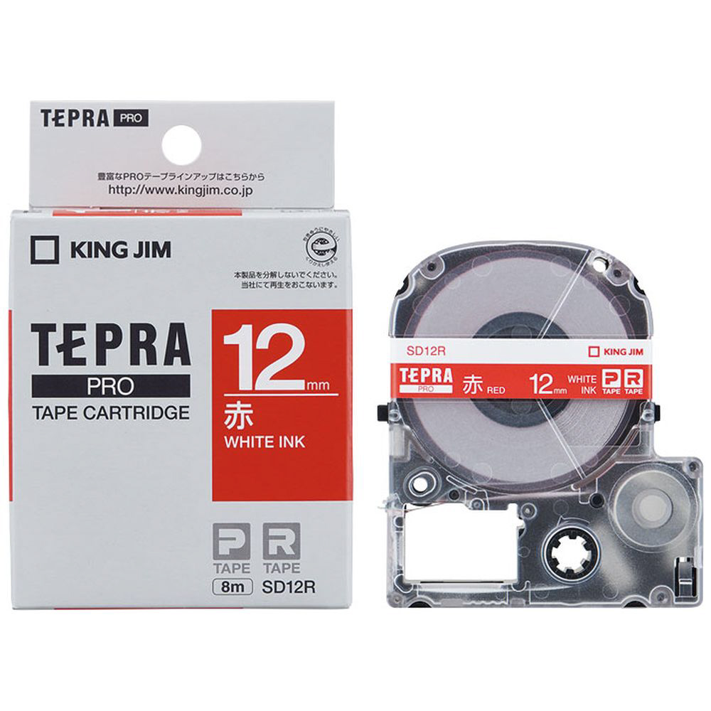 SD-12R (テプラPROテープカートリッジ 白テビビッド赤/白文字 12mm)