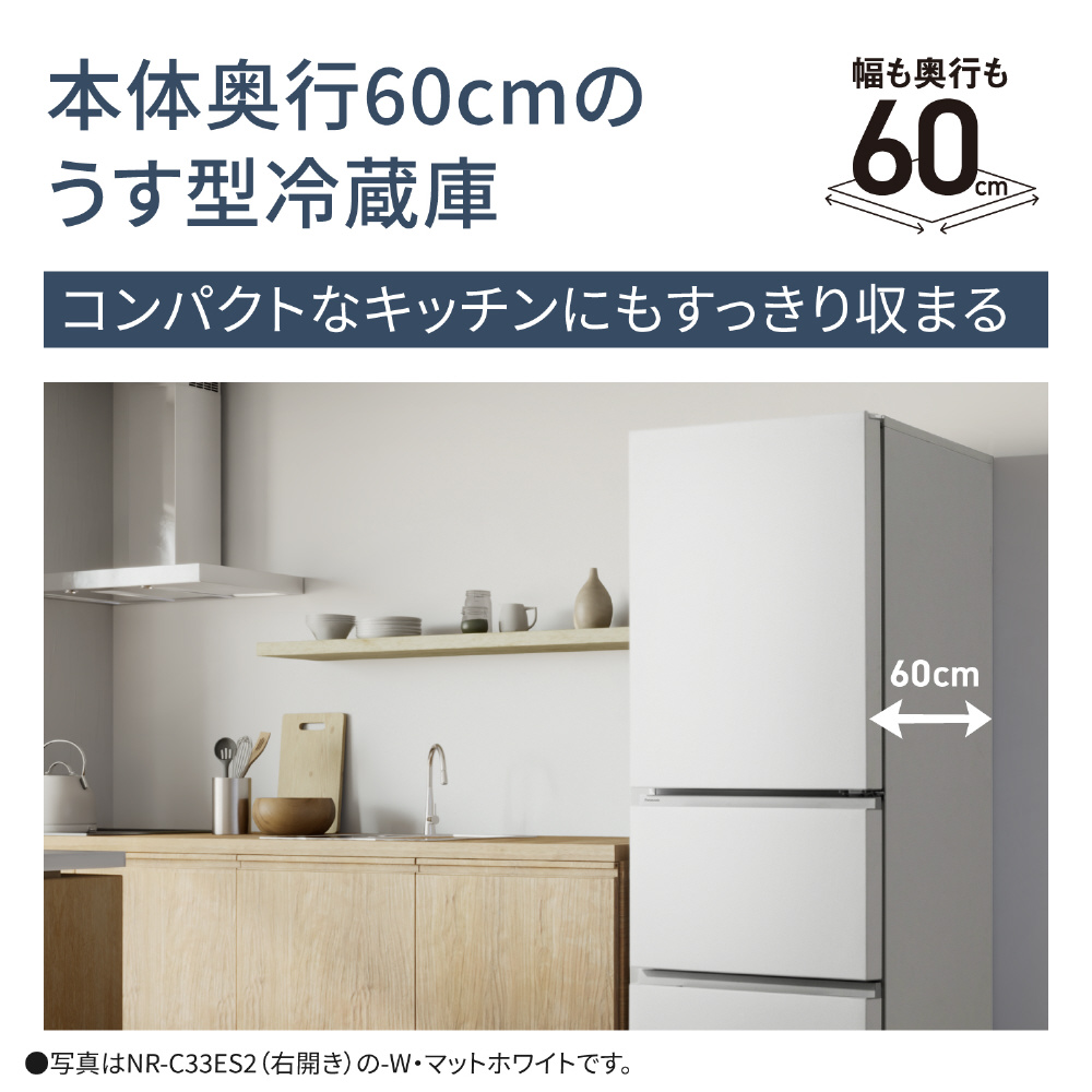 冷蔵庫 ESタイプ マットホワイト NR-C33ES2-W [60cm /326L /3ドア /右開きタイプ /2025年] 【基本設置料金セット】