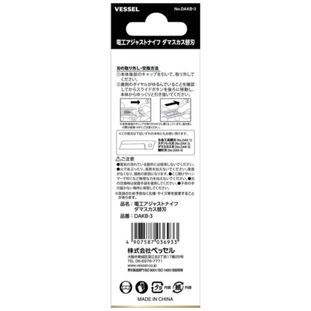 | 商品名 | VESSEL DAKB−3 電工アジャストナイフ替刃 ダマスカス替刃 |
