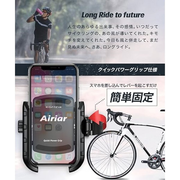 クイックレバー操作で万力の様にしっかりスマホを固定するのが特徴の