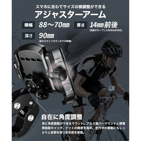 アーム幅:70〜88mm(小さいサイズのスマホ機種はケースをご使用ください。)