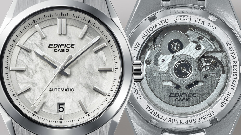 モータースポーツやクルマと時計の親和性を求めて挑戦し続けるEDIFICEから、ユニークなテクスチャの入ったダイアルを特徴とするメカニカル3針デイトモデルEFK-100YDをご紹介します。