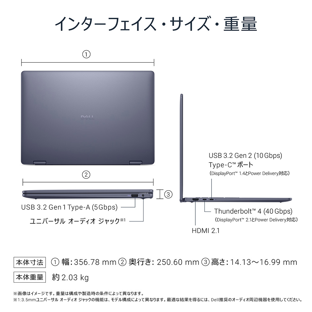 高精細かつ高輝度QHD+Mini LED解像度ディスプレイを搭載した、Dell 16 Plus 2-in-1ビジネス向けコンバーチブル ノートパソコン。クリエイターやプロフェッショナルに最適です。オンデバイスCopilot+と最新のインテル Core Ultra プロセッサー(シリーズ 2)を搭載し、さまざまな用途に使用できるよう設計された美しい16インチ ディスプレイ。究極の電力効率とパフォーマンスを提供し、最新のAI体験をかなえます。