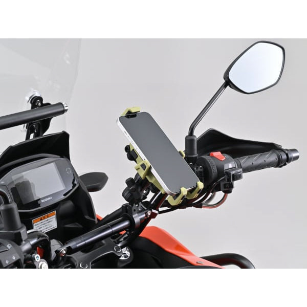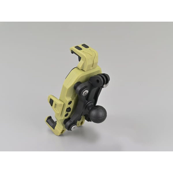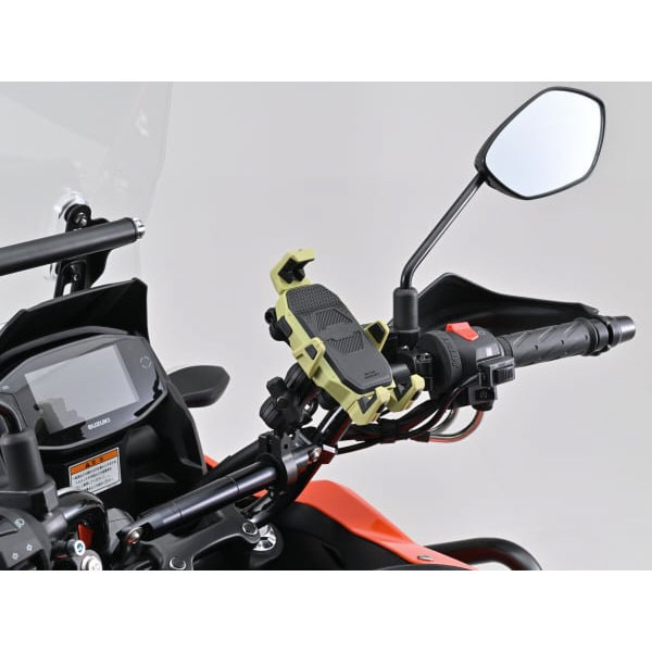 マウントとホルダー間に設けた振動吸収ダンパーと、アーム固定部の振動吸収クッションでスマホを振動から守ります。