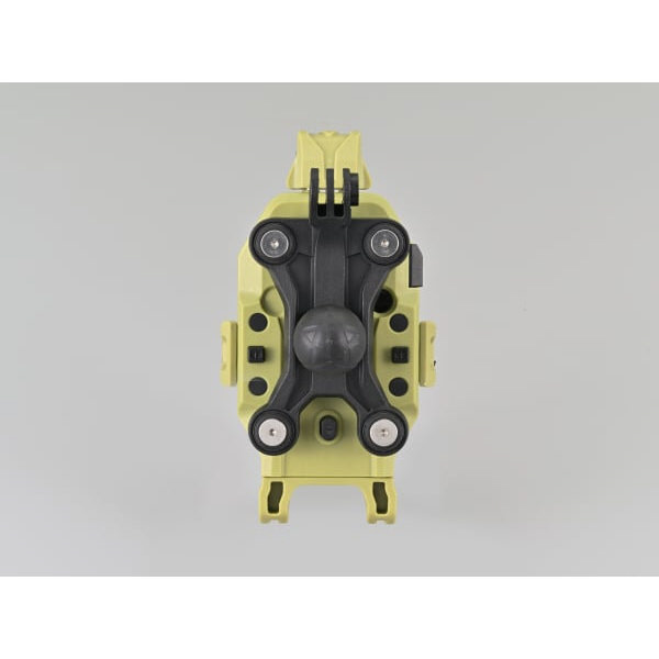 背面にアクションカメラを取り付けられる拡張マウントを装備。カメラの設置場所に困らない。