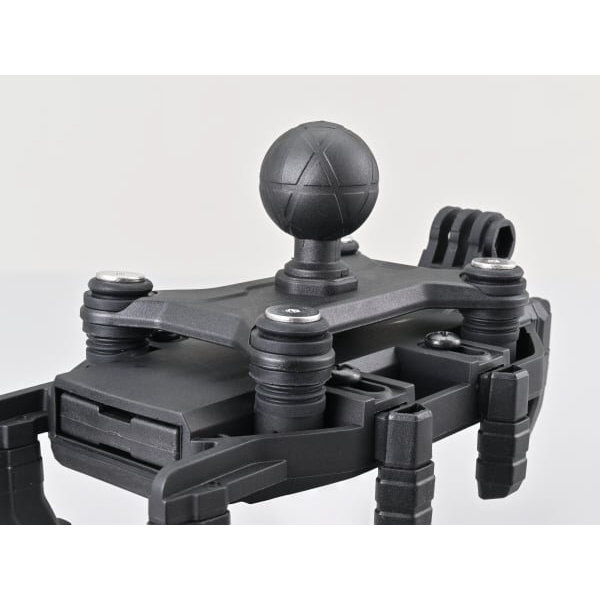 背面にアクションカメラを取り付けられる拡張マウントを装備。カメラの設置場所に困らない。