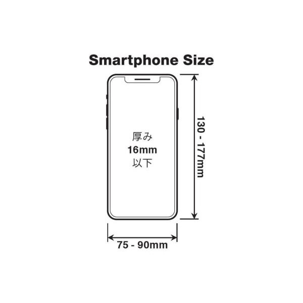 ■対応スマーフォンサイズ:縦130〜177×横75〜90×厚み16(mm)以下、重量250gまで
