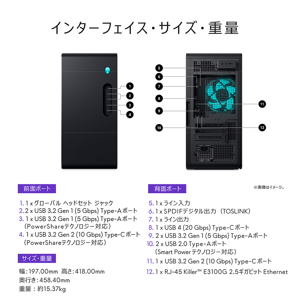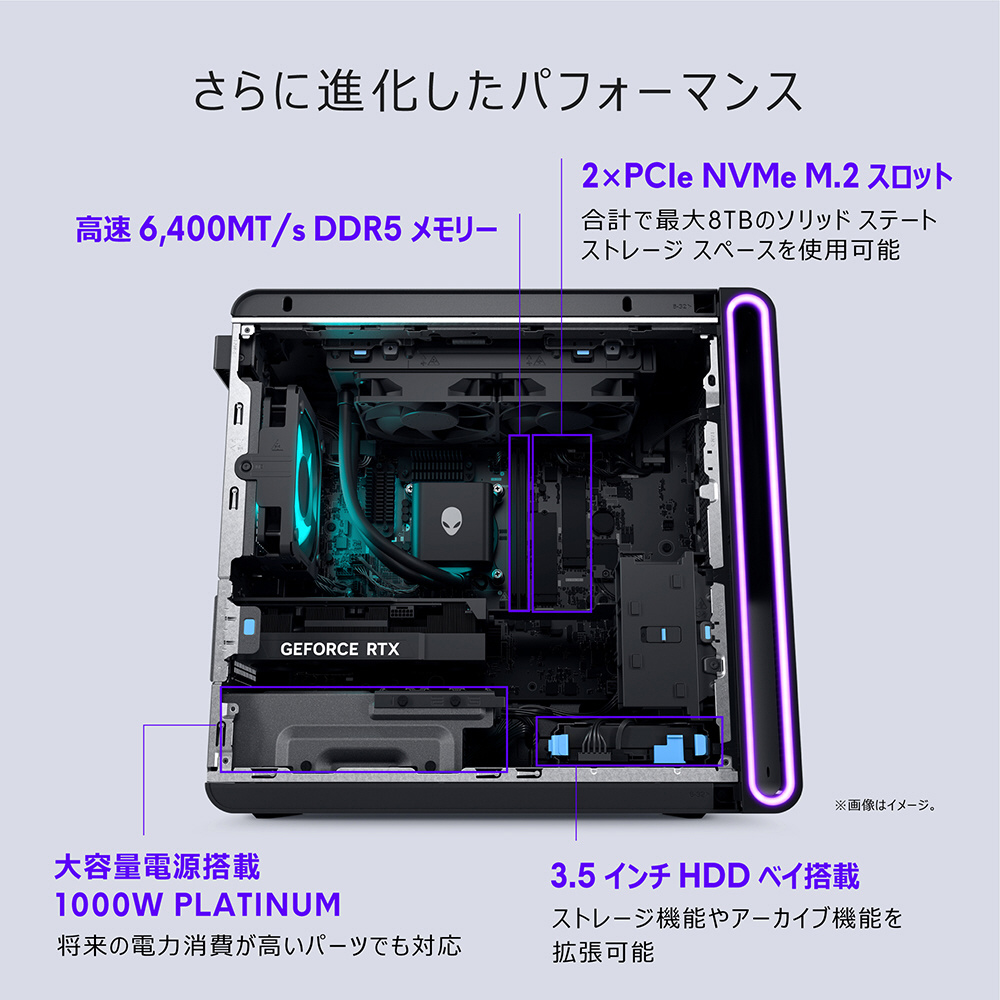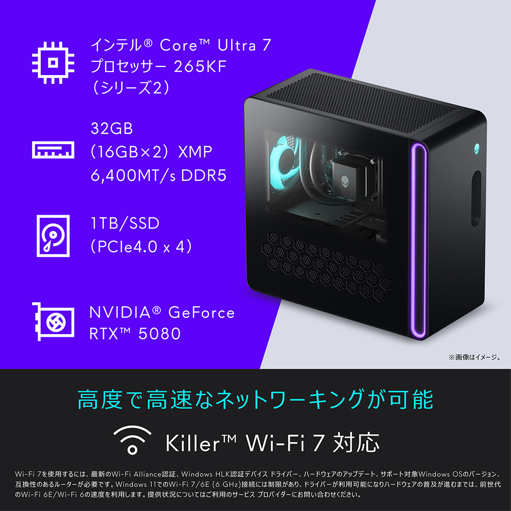 DAA8X0-FNC ゲーミングデスクトップパソコン Alienware Aurora(RTX 5080) バサルトブラック [Windows11 Home /intel Core Ultra 7 /メモリ:32GB /SSD:1TB /2025年夏モデル]