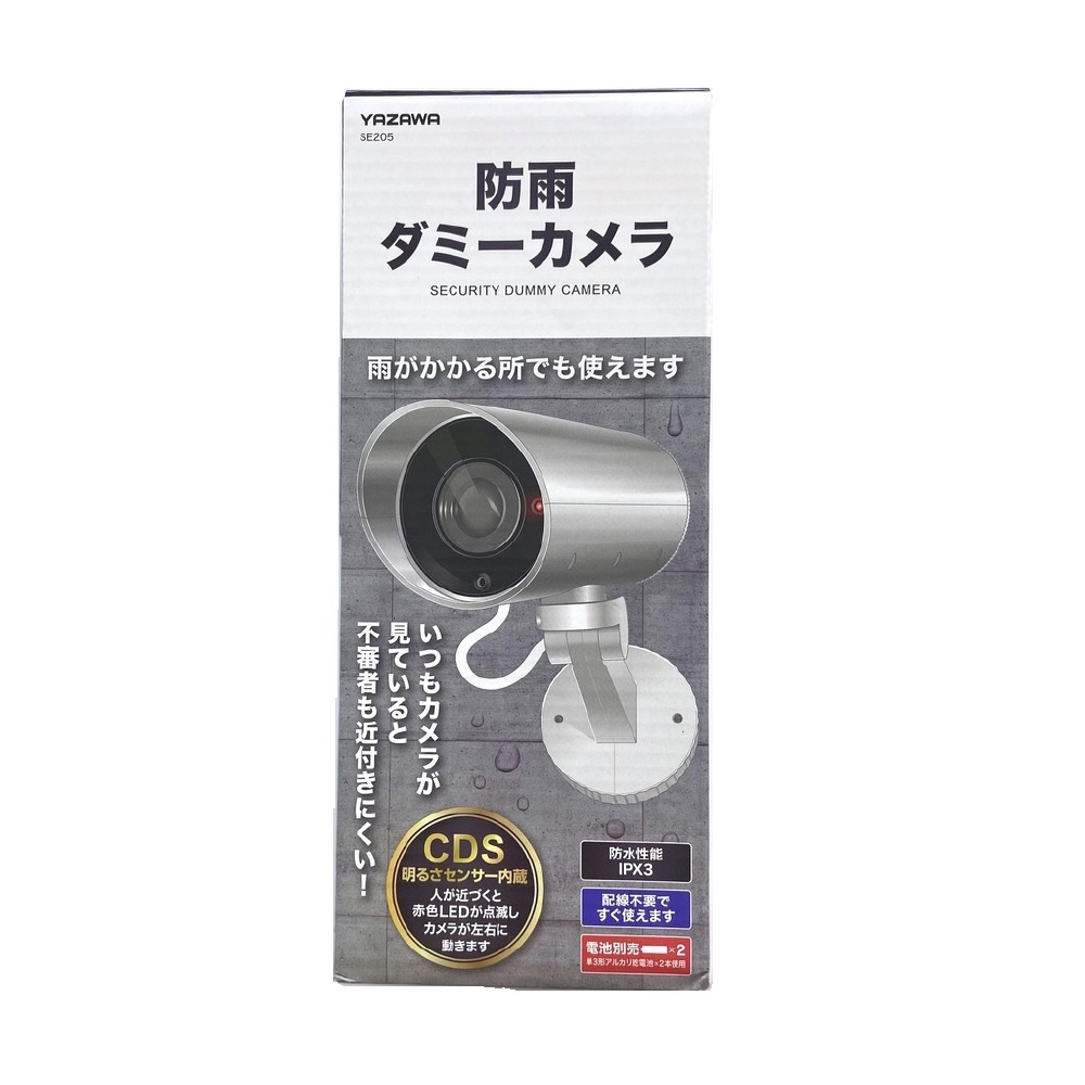 バレット型防雨ダミーカメラ SE205 人感センサーで赤色LED点滅&首振り 単3形アルカリ乾電池×2本(別売)