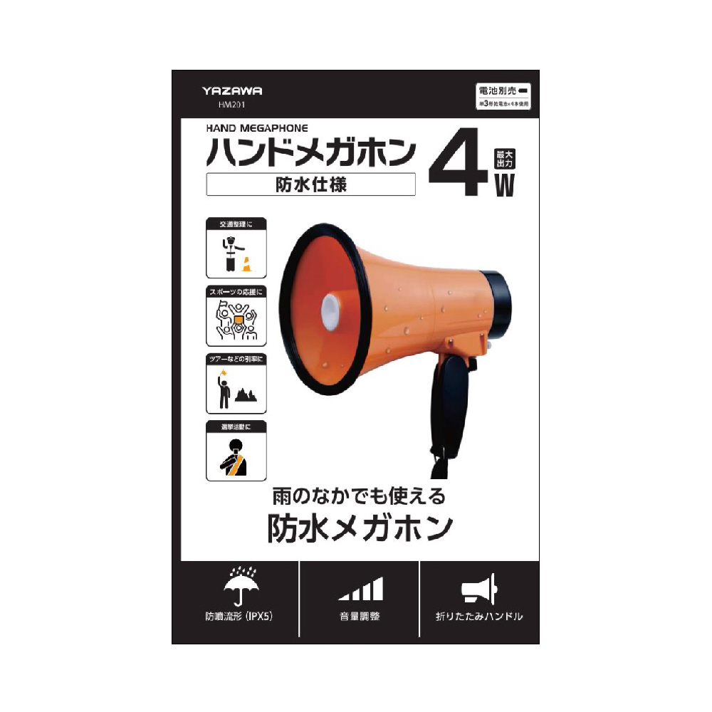 防雨ハンドメガホン HM201 防水性能:IPX5 単3形アルカリ乾電池×4本(別売)