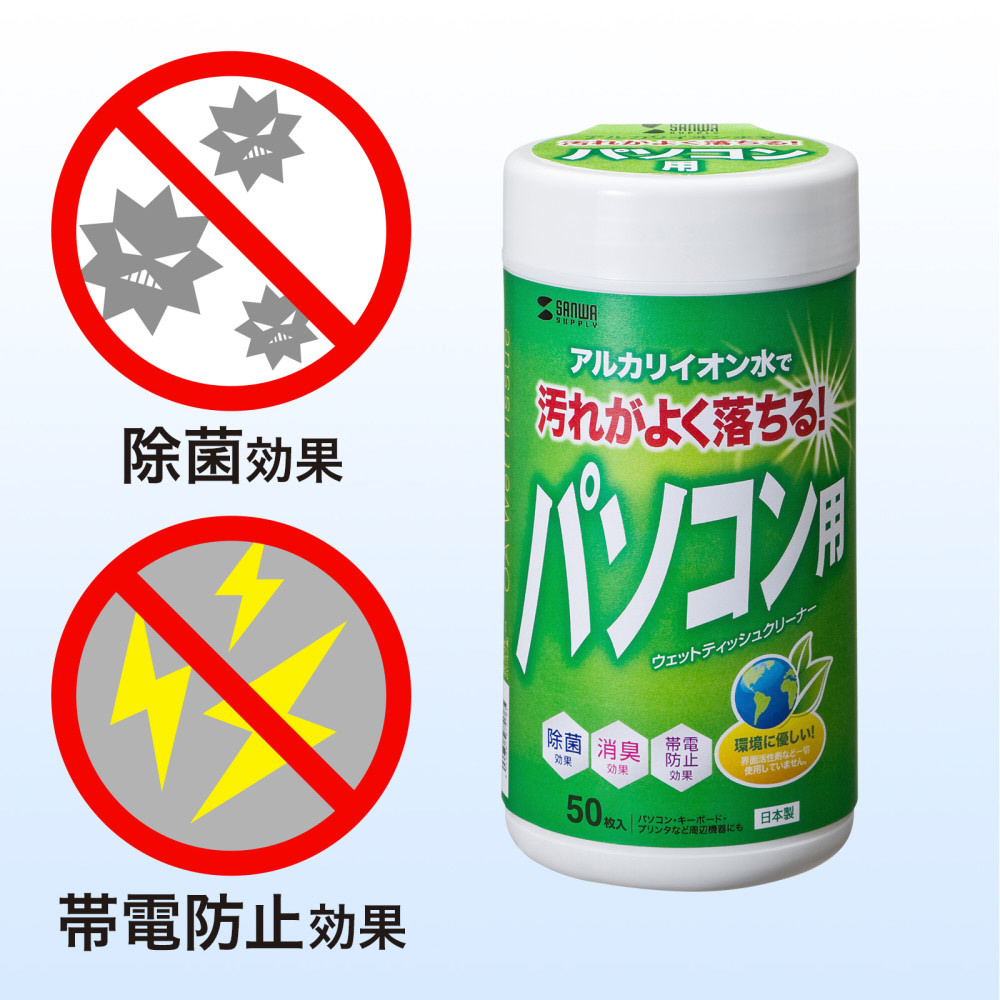 | 商品名 | ウェットクリーニングティッシュ [140x180mm /50枚] パソコン用 CD-WT1K2 |