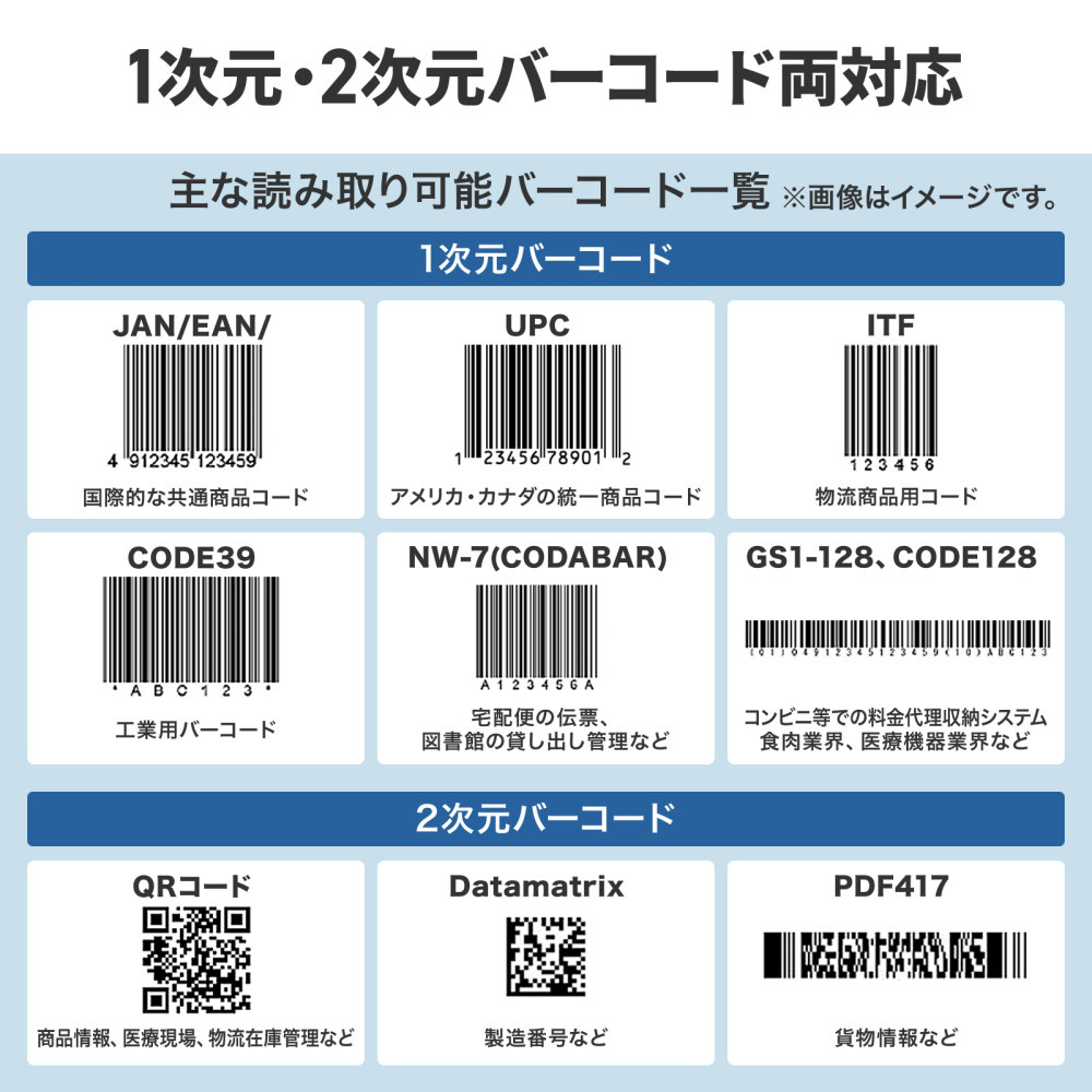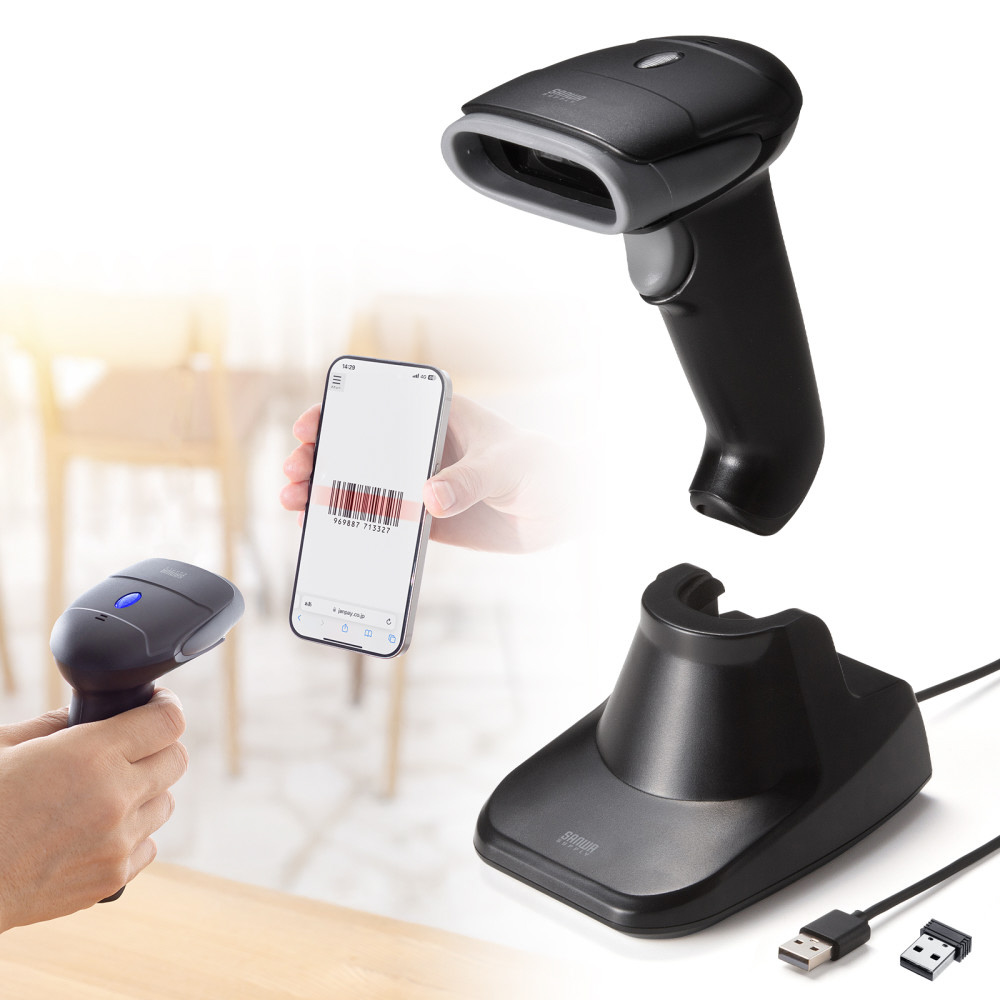 バーコードリーダー [Bluetooth・2.4GHzワイヤレス・USB-A /2次元・1次元対応] (Android/iPadOS/iOS/Mac/Windows11対応) BCR-BT2D15
