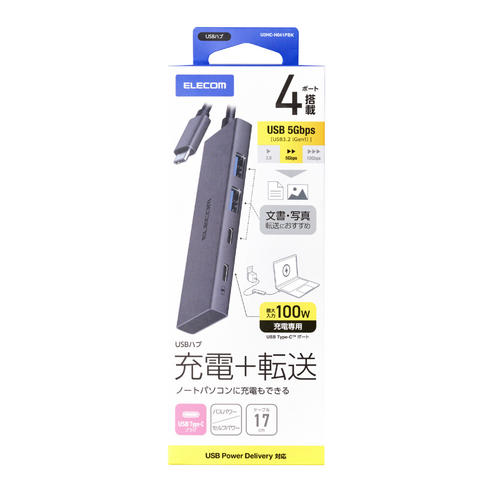 「USB Type-C(TM) 4ポート USB 5Gbpsハブ(USB PD対応)」