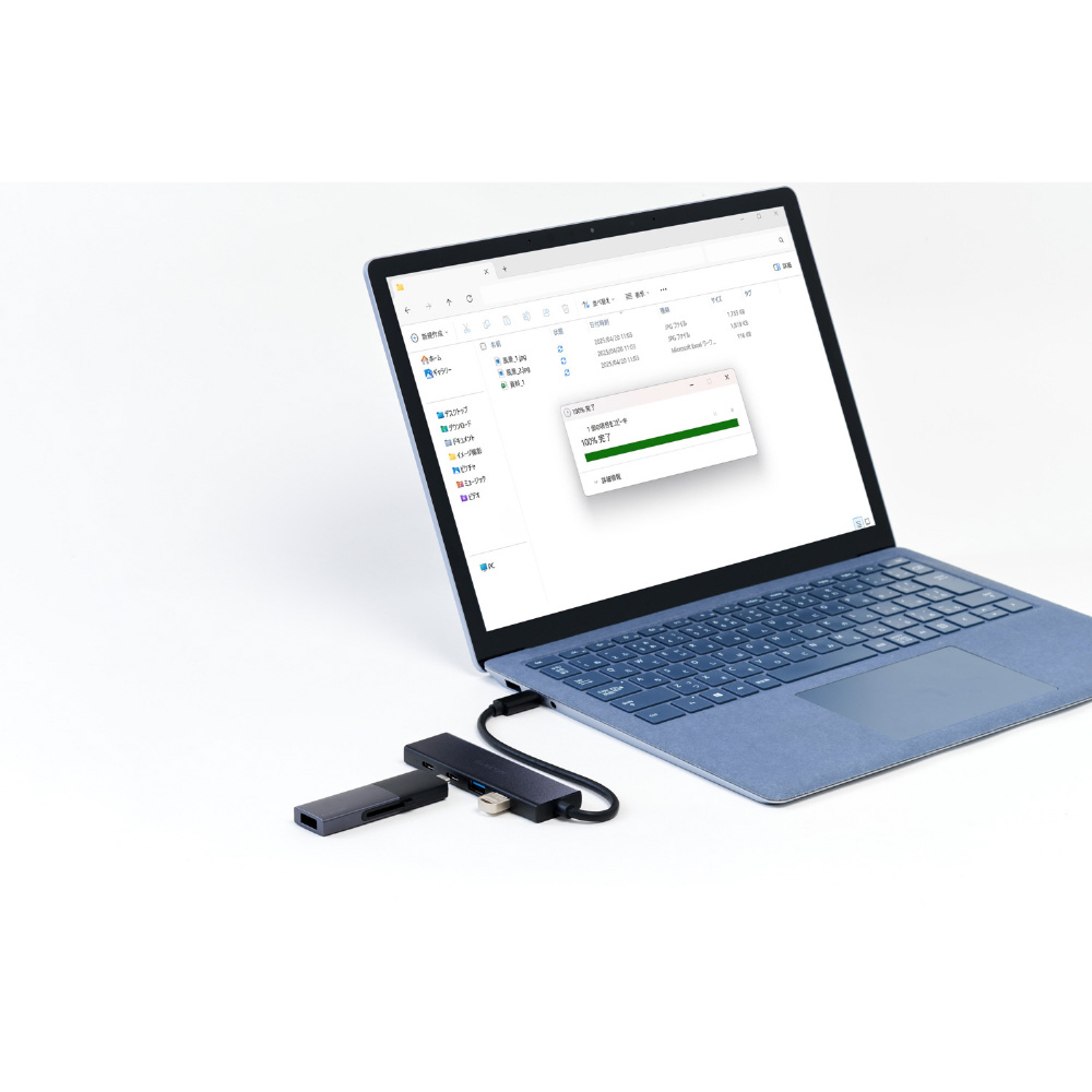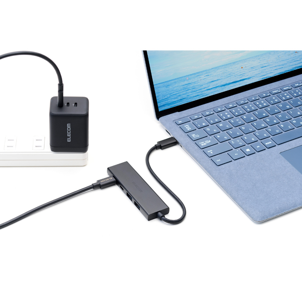 USB-Aポートを増やしてデスクまわりをすっきり。データ専用の2つのUSB-Aポートと1つのUSB Type-C(TM)ポート、給電専用のUSB Power Delivery対応USB Type-Cポートも搭載した、USB Type-C接続のUSBハブです。USB 5Gbps(USB3.2(Gen1))で高速データ転送が可能です。