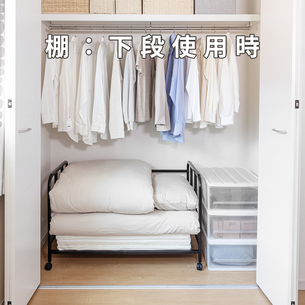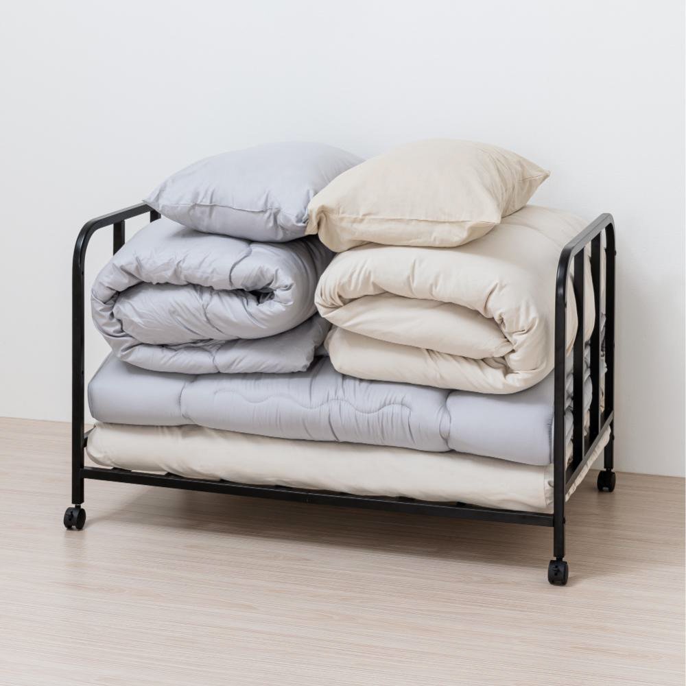 通気性も良く、お掃除や移動も楽にできるキャスター付きふとん収納ラック。