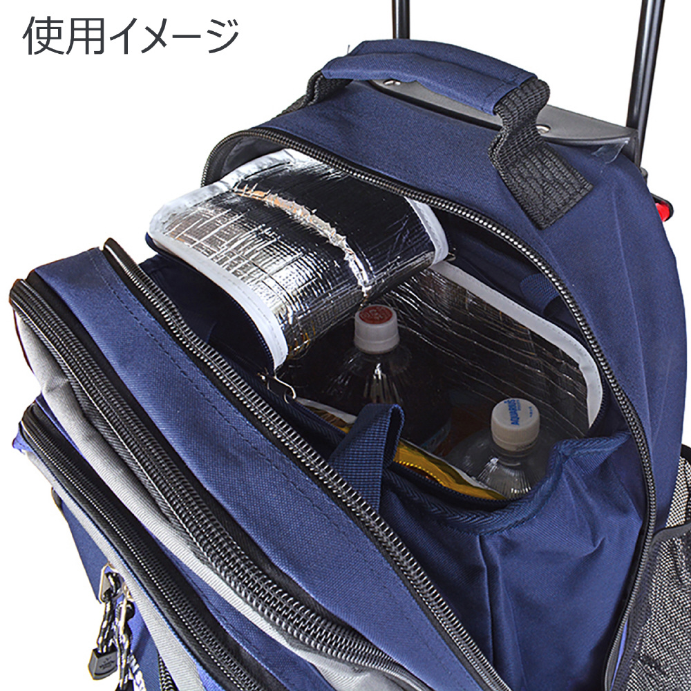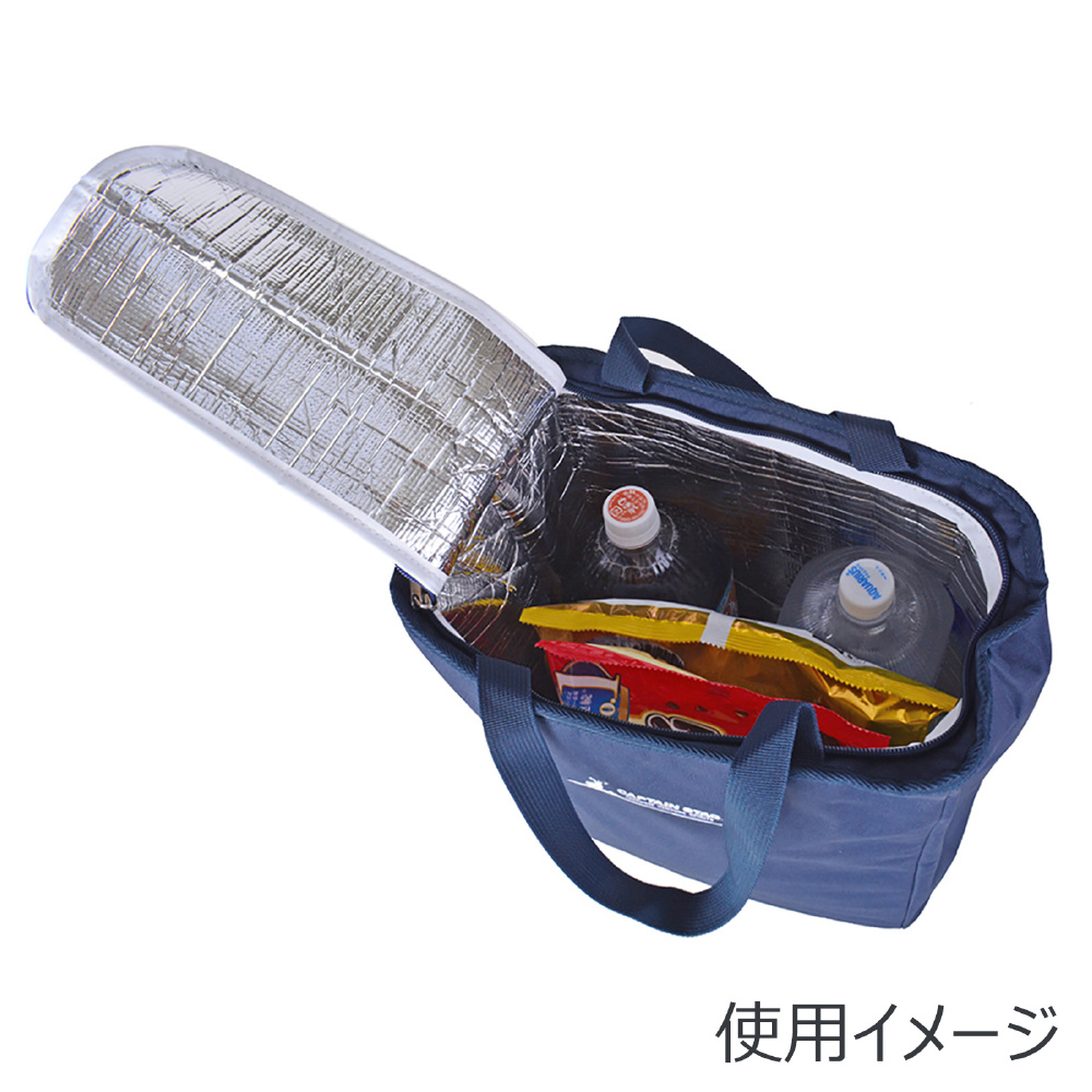 災害時にも活躍する保冷バッグ。保冷、保温が可能。持ち運びしやすいトートタイプ。開閉しやすいダブルファスナー仕様。CAPTAIN STAG キャリーリュック(1242)、防災キャリーリュック(900676)にぴったい収まります。
