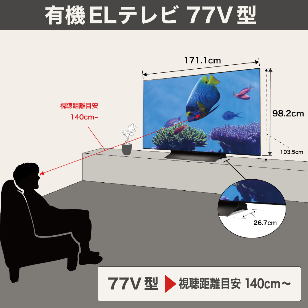 | スタンド含む本体サイズ(幅×高さ×奥行)mm | 1711×1035×267 |