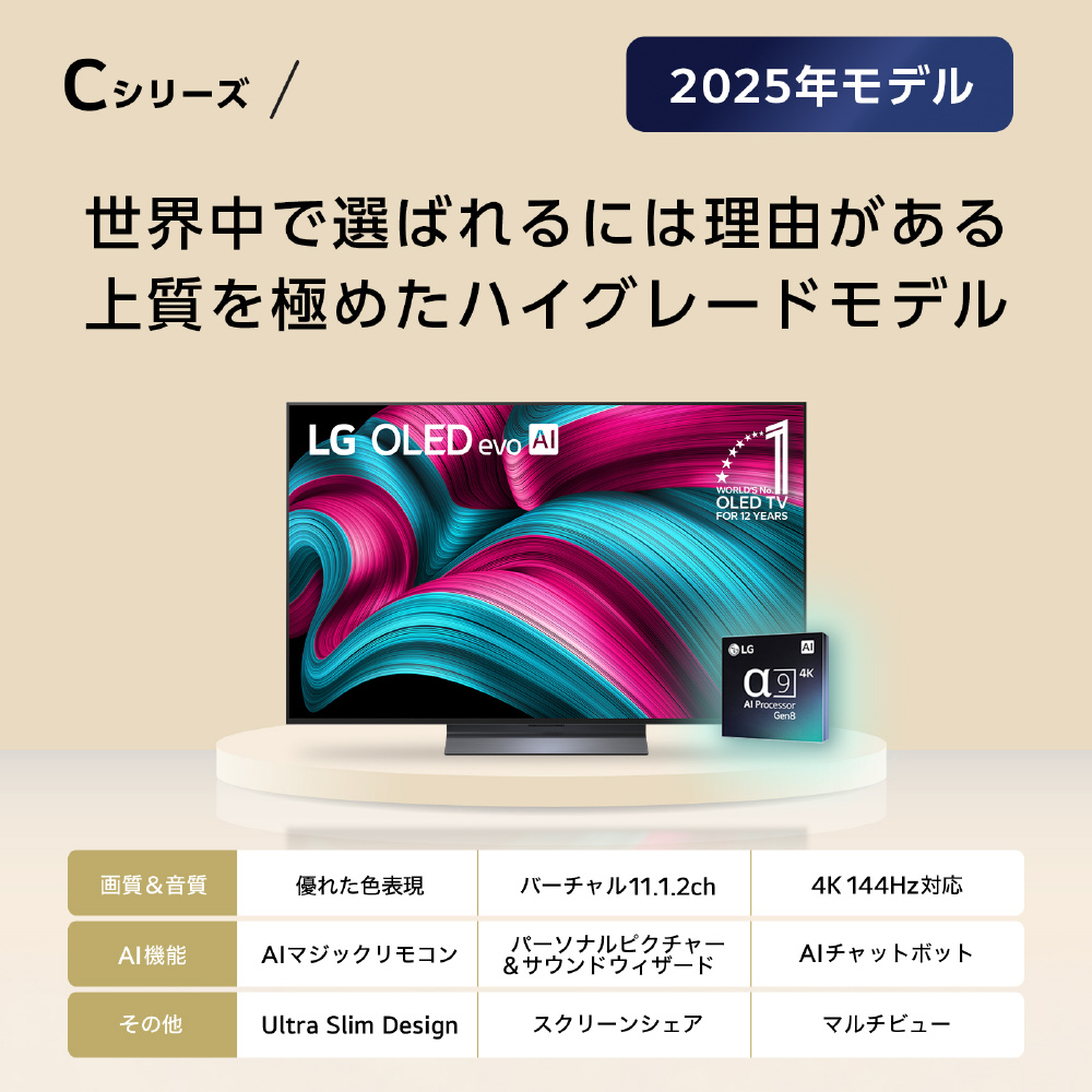 | 商品名 | 有機ELテレビ OLED65C5PJA [65V型 /Bluetooth対応 /4K対応 /BS・CS 4Kチューナー内蔵 /YouTube対応] |
