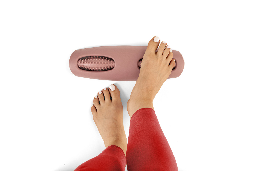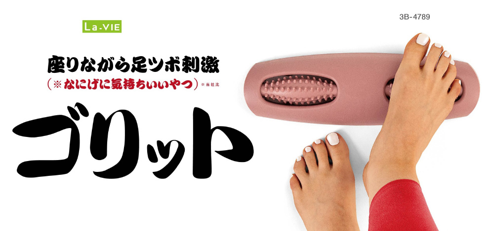 ■両足同時にローリングマッサージ。小さな突起が付いたローラーが、ゴリット こりをほぐします