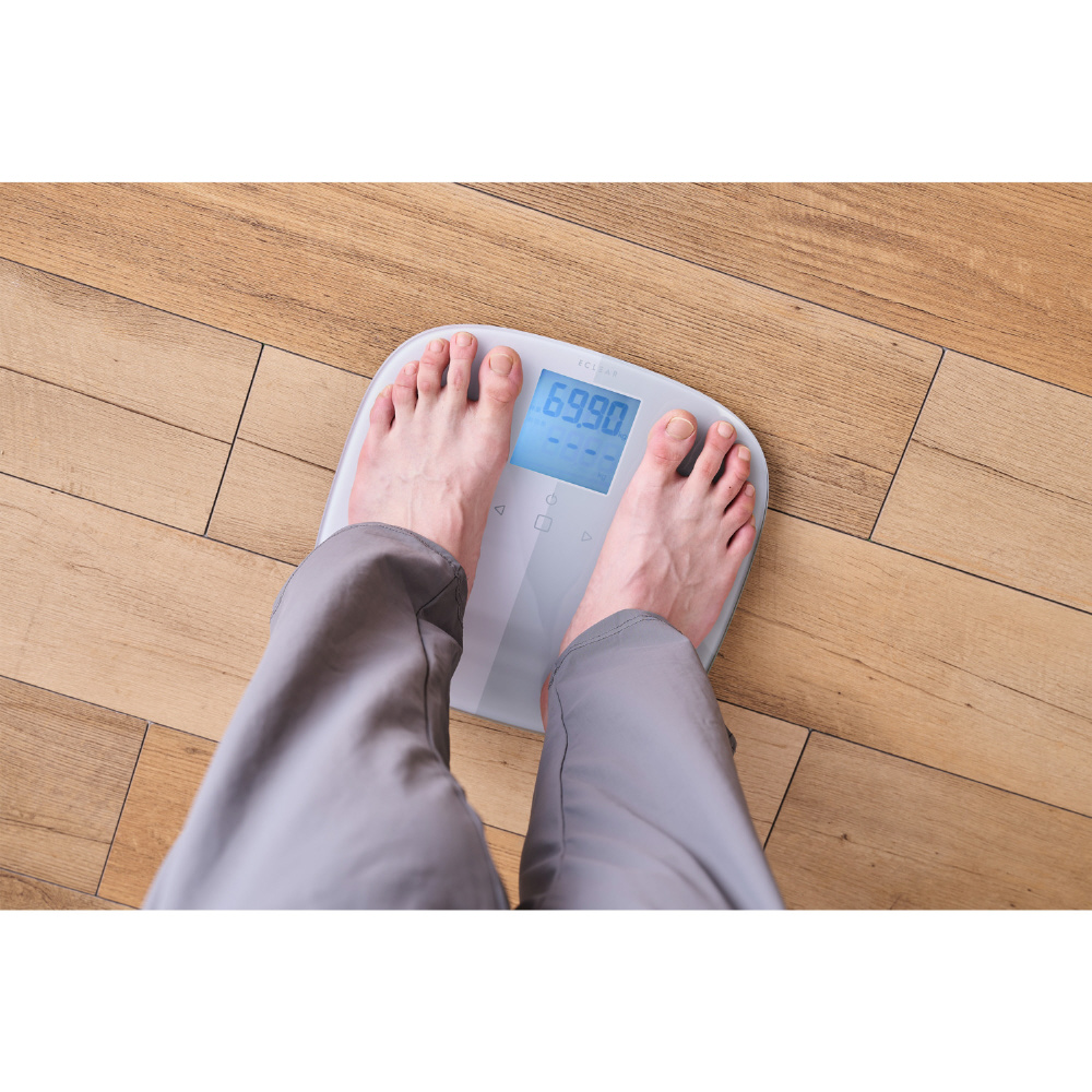 MRI測定データに基づき腹部全体の内臓脂肪を算出する体積推定方式を筑波大学と共同で開発。 より正確に内臓脂肪レベルの評価ができる“ECLEAR体組成計”です。 50グラム単位の精密な測定が可能で、内臓脂肪レベル・基礎代謝など8項目を測定可能。※100kgを超えると100g単位となります。
