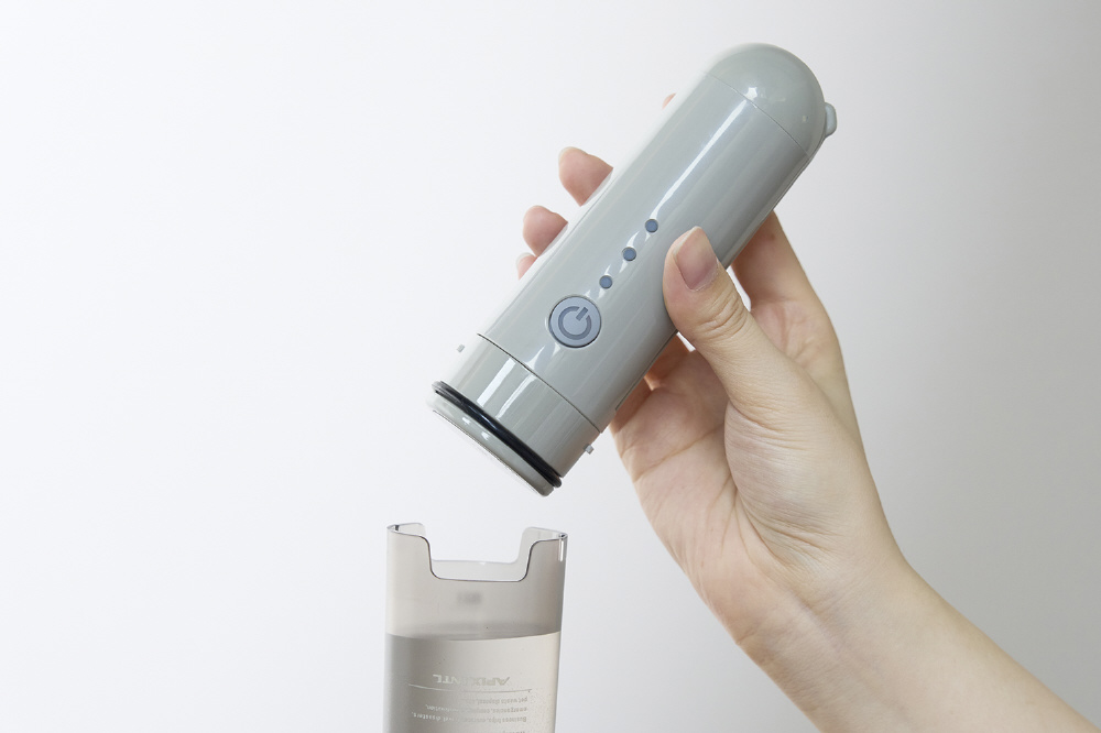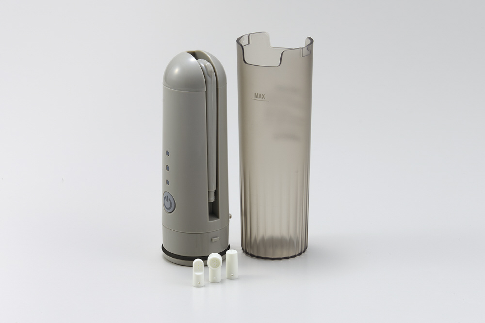 最大640ml/分の吐出量を誇る「強モード」をはじめ、「弱モード」・「リズムモード」の3段階水流で洗浄力とやさしさを両立。水タンク容量160ml、防水性能IPX4